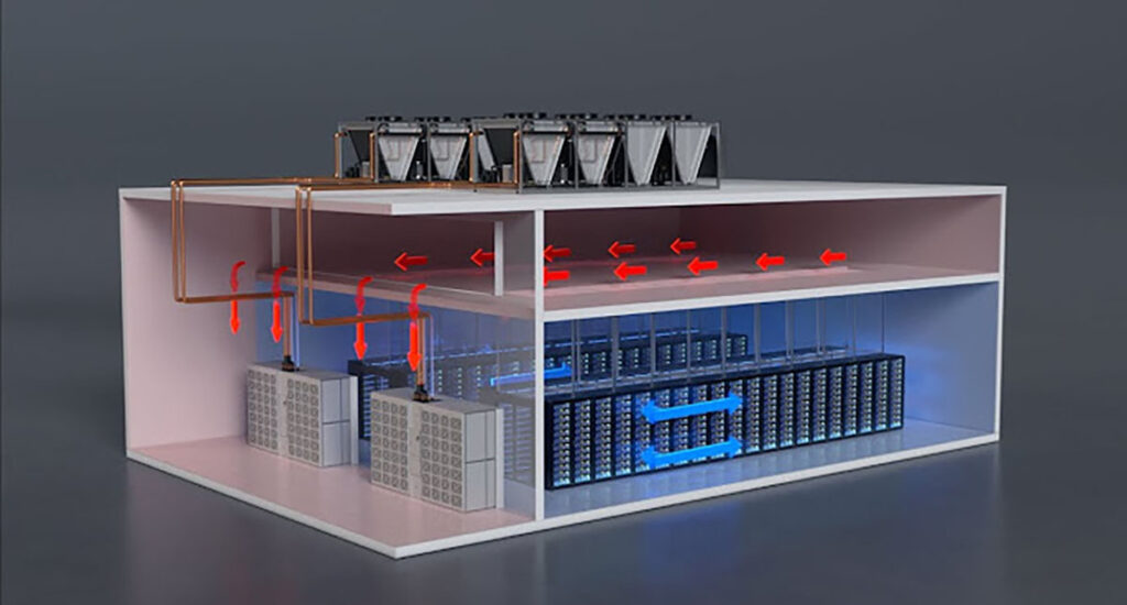 В основе таких высоконагруженных процессов лежат от сотен до десятков тысяч серверов в стойках, которые объединяют вычислительные мощности центральных процессоров, оперативной памяти, хранилищ большого объёма данных, сетевое оборудование и источники питания. В связи с новыми потребностями для обучения и вывода искусственного интеллекта (ИИ) на новые уровни, плотность стоек быстро растёт, масштабируясь от 10 кВт до более чем 120 кВт на стойку. Чтобы удовлетворить растущий спрос на электроэнергию и необходимость отвода тепла, требуется новый подход.